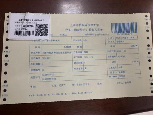 第五步:后勤做好固定资产后,将固定资产条形码及黄联交回图书馆办公室俞老师。