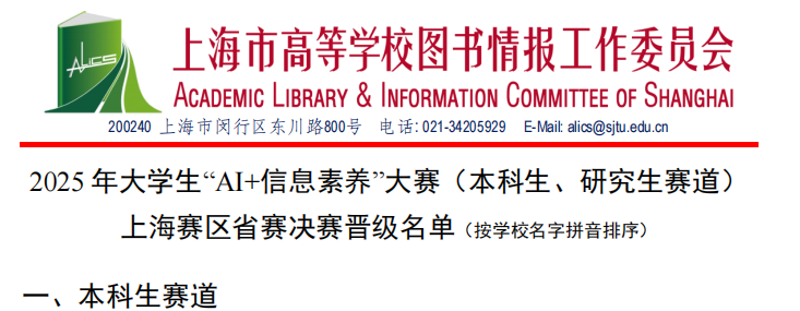 (上海赛区省赛决赛晋级名单)