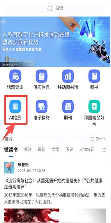 2.AI 解书:通过AI 馆员完成一次图书解读,得10积分,每日上限30积分;